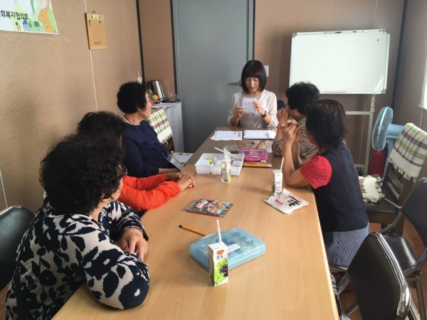 - 내용: 노인종합상담센터에서는 치매예방 활동을 통한 우울감 완화 하반기 집단상담 <'뇌'나이는 청춘> 1회기를 진행하였습니다. 총6명의 어르신이 참석하신 가운데, 집단의 규칙과 별칭을 정하고 나의 모습을 그림으로 표현하는 시간을 가졌습니다.