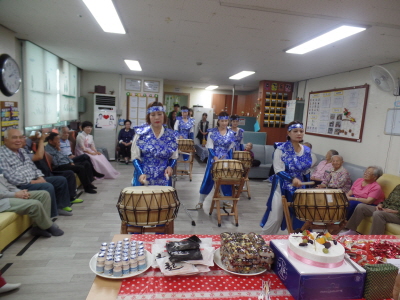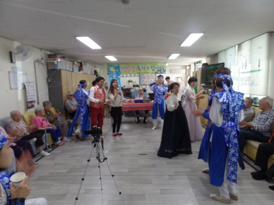 - 인 원: 어르신 17명, 센터관장님, 주간보호 직원 5명, 노래교실 공연단 4명(백성숙 강사 외3명), 난타 공연단 6명(방그리난타공연팀)