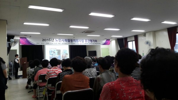 - 내용: 2016년 노인사회활동지원사업 1월부터 6월까지의 사업을 보고하였습니다. 사업중간보고와 소비자 교육을 진행하였습니다. 비가 많이 오는 날에도 불구하고 많은 어르신들이 참석해 주셨고, 잘 마무리 할 수 있었습니다.