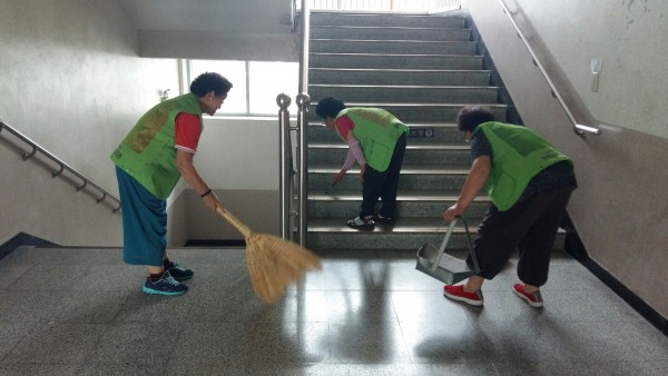 출근부 관련해서 결근없이 근무시간이 잘 지켜지고 있었고, 주로 학교 내부 청소를 하고 계셨습니다.
