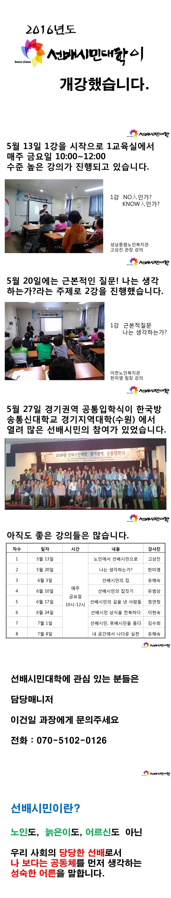 2016년 선배시민대학 개강 페이지 정보 작성자 이건일 작성일16-05-30 16:50 조회1,337회 댓글0건 관련링크 이전글 다음글 목록 본문 2016년 선배시민대학 개강 댓글목록 등록된 댓글이 없습니다. 이전글 다음글 목록