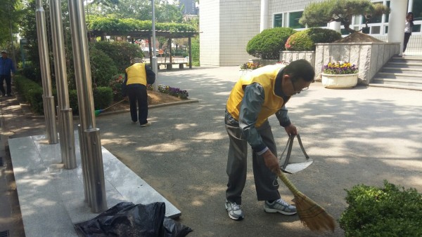 화단 잡초 제거 작업을 하고 계셨습니다.
