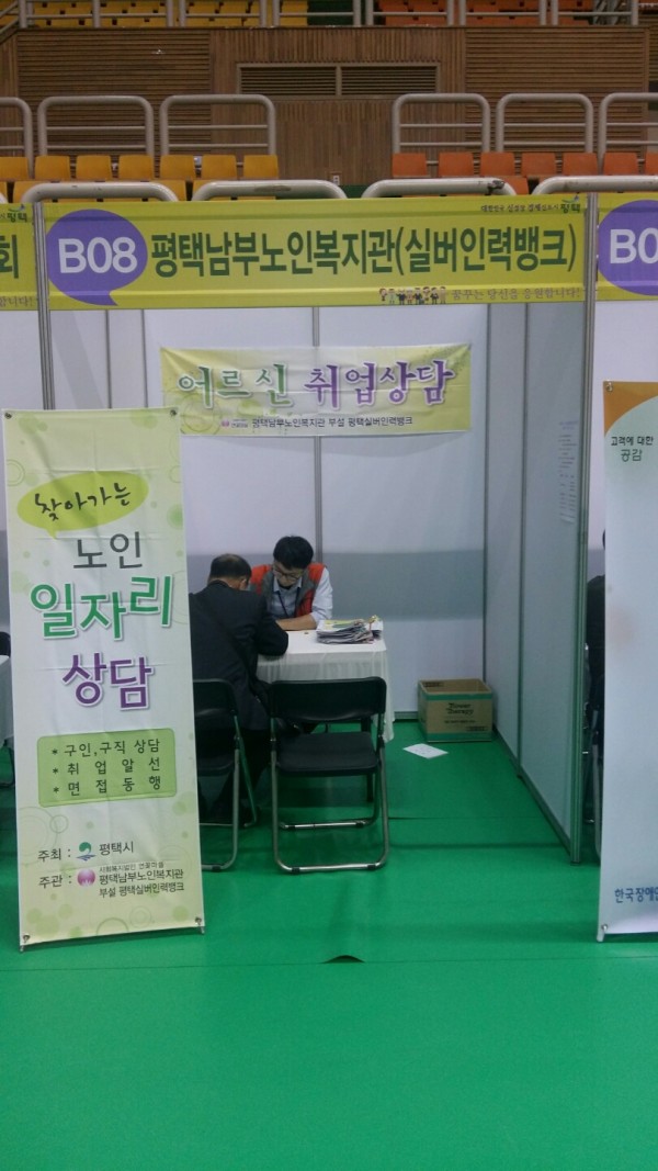 - 내용: '일자리박람회'를 참석하였습니다. 만 60세 이상어르신들을 대상으로 일자리상담을 하였고 총 25건의 상담과 15건의 신청서를 작성하였습니다. 많은 어르신들이 관심을 보여주셨고 상담한 어르신들이 취직할 수 있도록 노력하겠습니다.