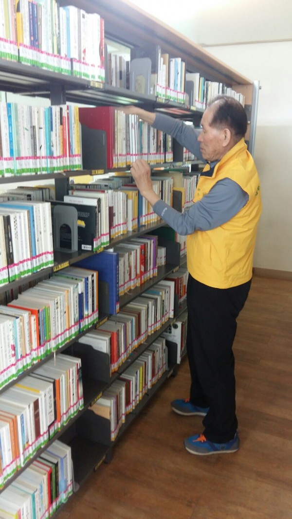 도서관 같은 경우는 반납된 도서 서가에 배치하거나 도서관 주변 정리를 하고 계셨습니다.