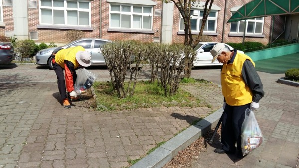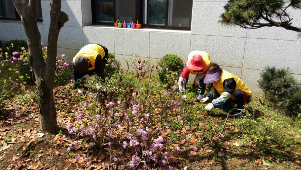 화단 잡초 제거 작업을 하고 계셨습니다.