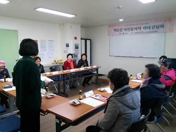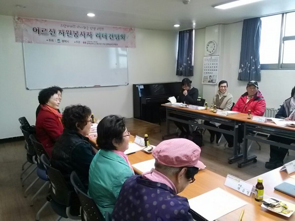 내용: 2016년 어르신 자원봉사단 리더분들과 함께 상반기 리더간담회를 실시하였습니다. 한해동안 리더로서 다양한 의견을 내시고 수렴하는 시간이였습니다. 참여하신 모든 리더분들께 감사의 인사드립니다.