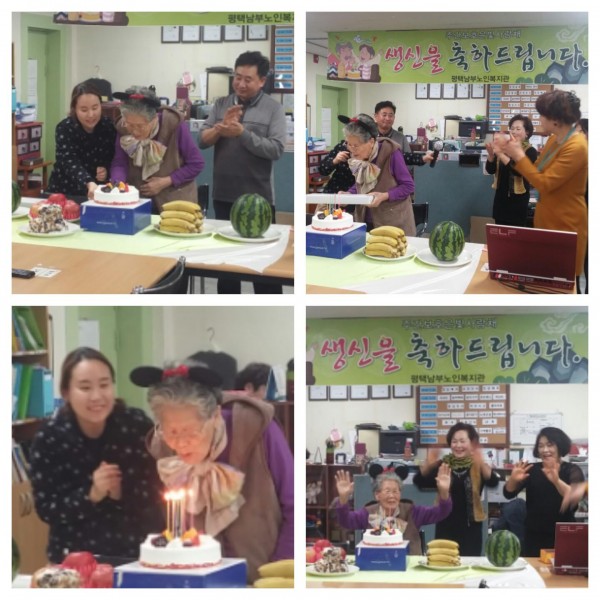 이날은 김정순 어르신의 생신이 있었습니다. 행복한 순간이 되셨길 바래봅니다. 앞으로도 더 건강하시고 주간보호에서 편안하고 즐겁게 지내시길 바랍니다. 간식후원 해주신 교촌치킨 비전점, 동방재활원, 파리바게뜨, 한꼬마 김밥 외 후원자님들 감사드립니다.