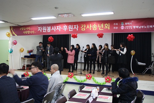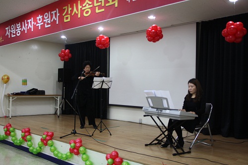 5. 내용 : 복지관에서는 한해동안 아낌없는 후원과 봉사를 해주신 분들을 모시고 12월 9일 오후16시 복지관 2층강당에서 직원공연(합창), 수상식, 활동영상보고, 바이올린 공연(니르바나 필하모닉 오케스트라 단장), 오찬 순으로 2015년 자원봉사자, 후원자 감사송년회가 진행되었습니다.