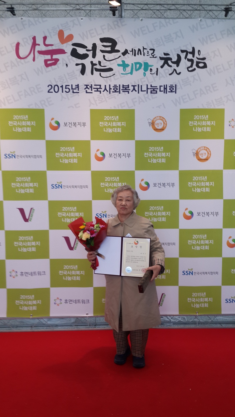 2015년 전국사회복지나눔대회에서 1-3세대강사파견(종이접기) 배옥식어르신께서 보건복지부장관상을 표창하셨습니다. 많은 축하부탁드리겠습니다.^^