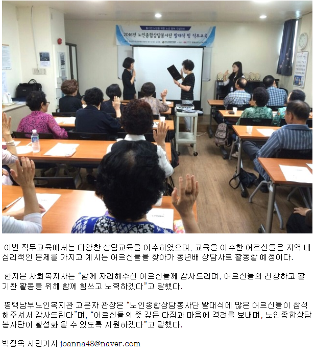 2016년 7월 13일 - 노인종합상담봉사단 발대식 개최(자치신문)