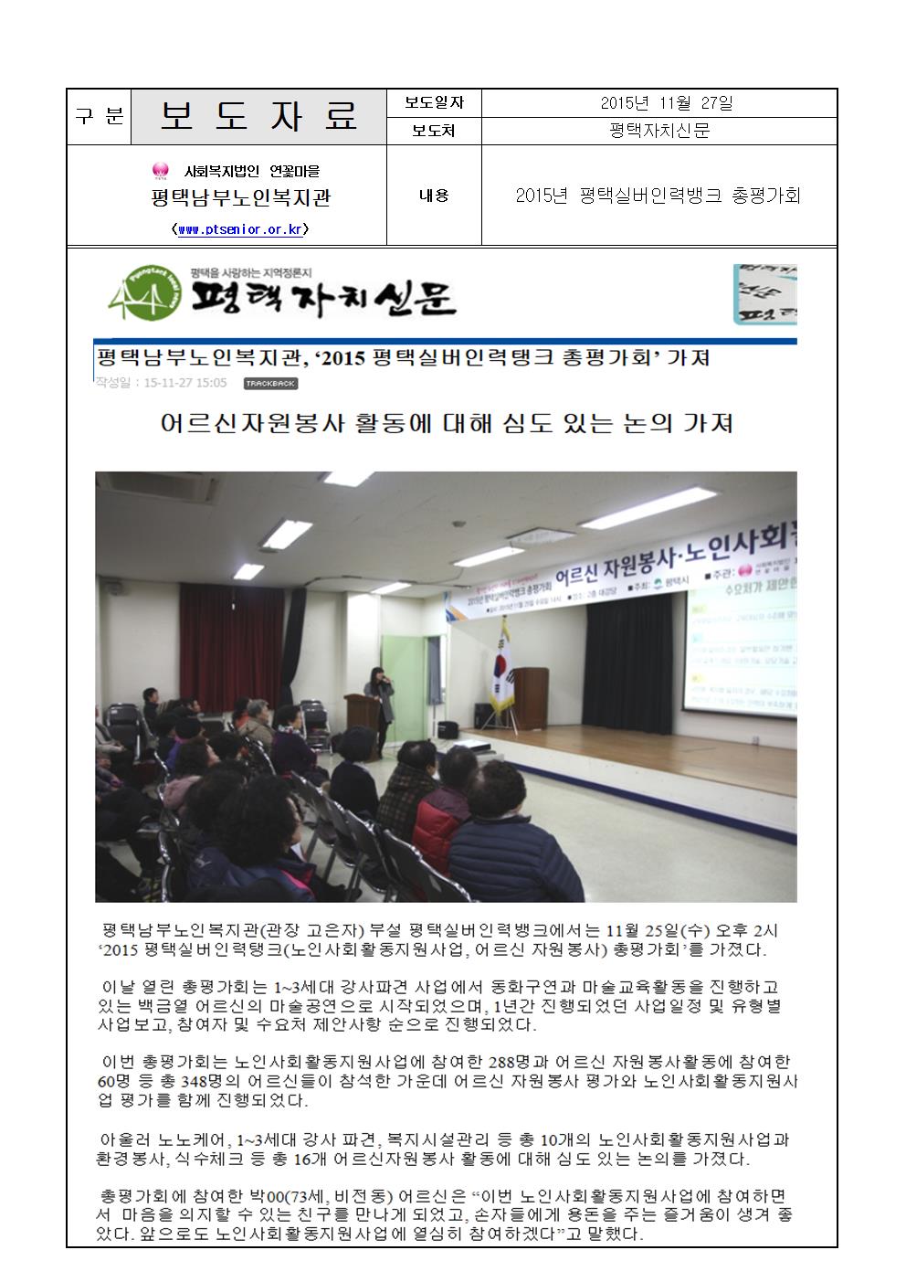 2015년 11월 27일 - 실버인력뱅크 최종평가회(평택자치신문) 페이지 정보 작성일15-12-26 12:36 조회3,986회 댓글0건 관련링크 이전글 다음글 목록 본문 자세한 내용은 아래 주소를 참고바랍니다.http://www.ptlnews.kr/bbs/board.php?bo_table=news02&wr_id=102361 댓글목록 등록된 댓글이 없습니다. 이전글 다음글 목록