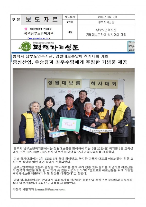 2016년 3월 2일 - 정월대보름행사 보도(평택자치신문외 1곳)