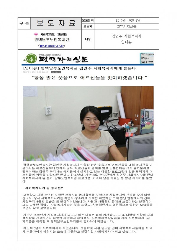 2015년 10월 2일 - 김연주사회복지사 인터뷰