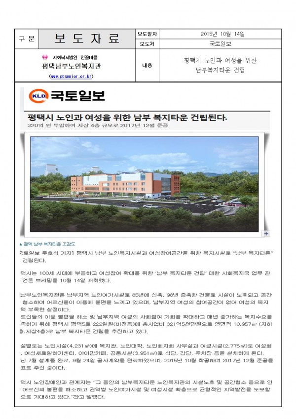 2015년 10월 14일 - 남부복지타운 건립(국토일보) 페이지 정보 작성일15-10-23 12:24 조회4,137회 댓글0건 관련링크 이전글 다음글 목록 본문 보다 자세한 내용은 아래 주소를 참고바랍니다.http://www.ikld.kr/news/articleView.html?idxno=48987 댓글목록 등록된 댓글이 없습니다. 이전글 다음글 목록