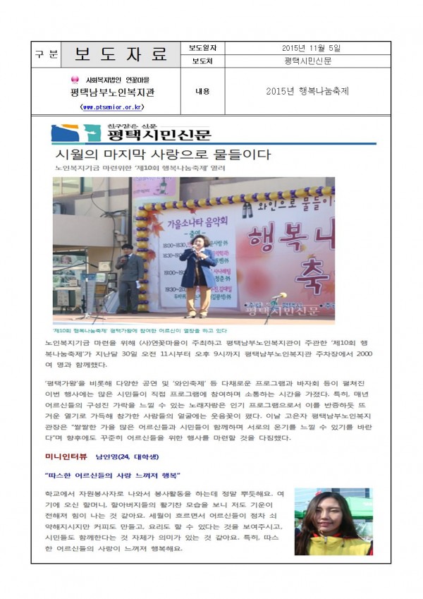 2015년 11월 5일 - 행복나눔축제(평택시민신문)
