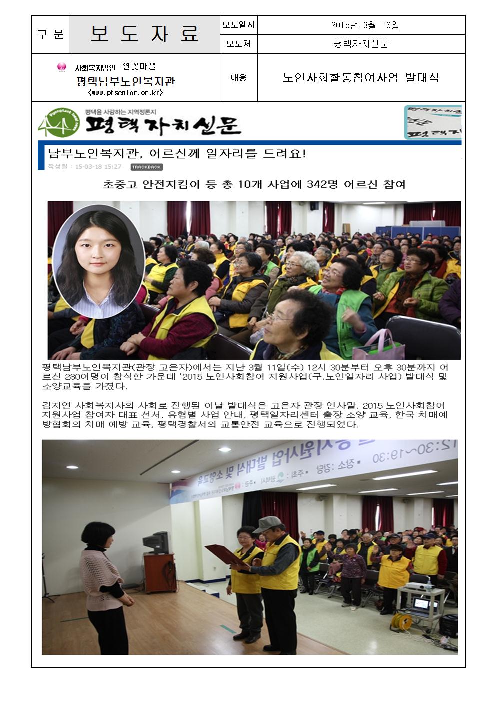 2015년 3월 18일 - 노인사회활동참여사업 발대식