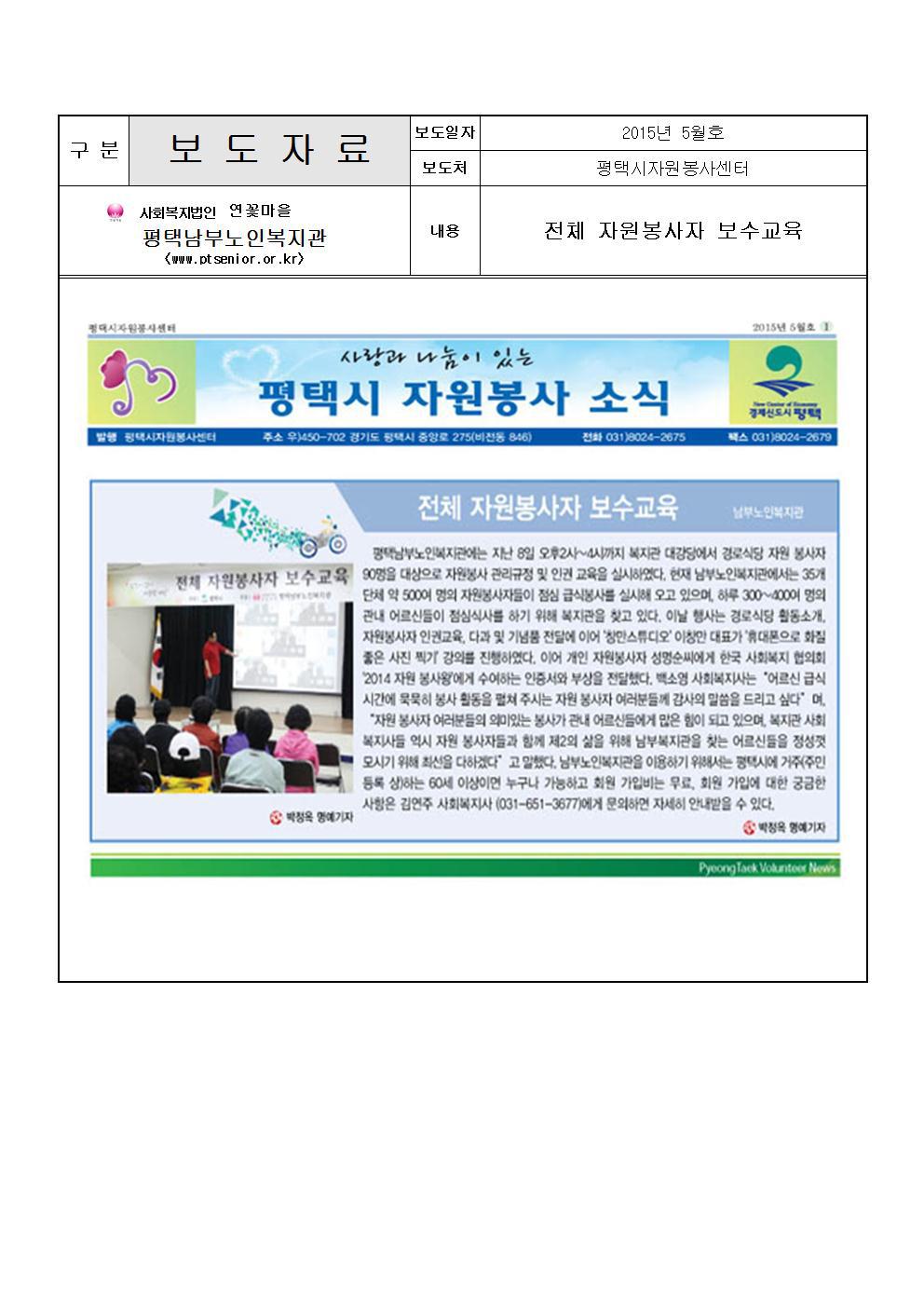 2015년 5월호 - 전체자원봉사자보수교육 페이지 정보 작성일15-05-14 14:39 조회3,939회 댓글0건 관련링크 이전글 다음글 목록 본문 자세한 내용은 아래 주소 참고바랍니다.http://www.pt1365.go.kr/vol/gov/mogaha/ntis/web/vol/vcm/action/VolVcmBbsPortalAction.do 댓글목록 등록된 댓글이 없습니다. 이전글 다음글 목록