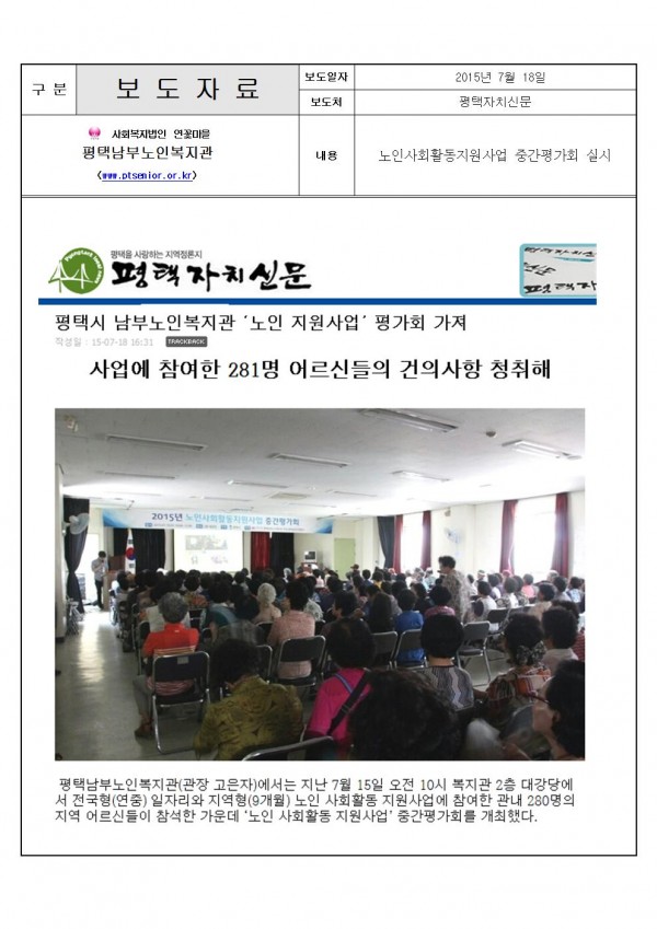 2015년 7월 18일 - 노인사회활동지원사업 중간평가회