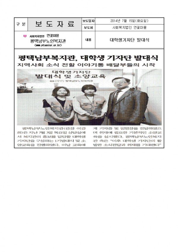 2014년 7월 15일 -대학생기자단발대식-연꽃마을 페이지 정보 작성일14-09-04 14:04 조회3,330회 댓글0건 관련링크 이전글 다음글 목록 본문 . 댓글목록 등록된 댓글이 없습니다. 이전글 다음글 목록
