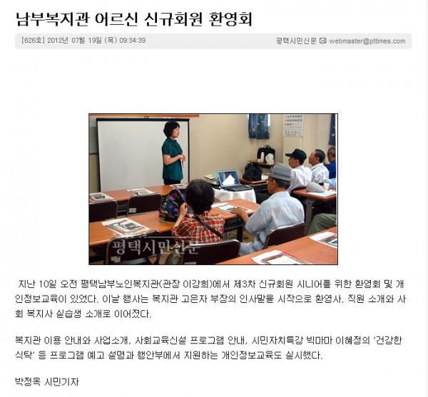 2012년 7월 18일 수요일 평택시민신문-남부복지관어르신 신규회원 환영회 페이지 정보 작성일12-07-20 19:02 조회3,271회 댓글0건 관련링크 이전글 다음글 목록 본문 . 댓글목록 등록된 댓글이 없습니다. 이전글 다음글 목록