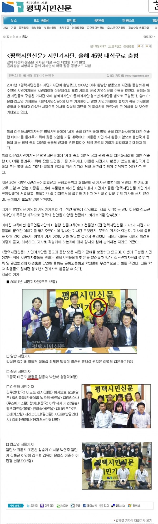 2011년 6월 22일 평택시민신문 시민기자단출범