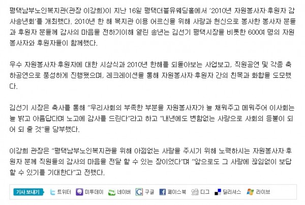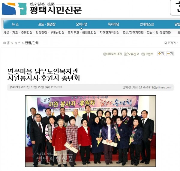 2010년 12월 22일자 평택시민신문 "연꽃마을 남부노인복지관 자원봉사자·후원자 송년회" 페이지 정보 작성일11-05-16 15:35 조회3,255회 댓글0건 관련링크 이전글 다음글 목록 본문 2010년 12월 22일자 평택시민신문 스크랩 댓글목록 등록된 댓글이 없습니다. 이전글 다음글 목록