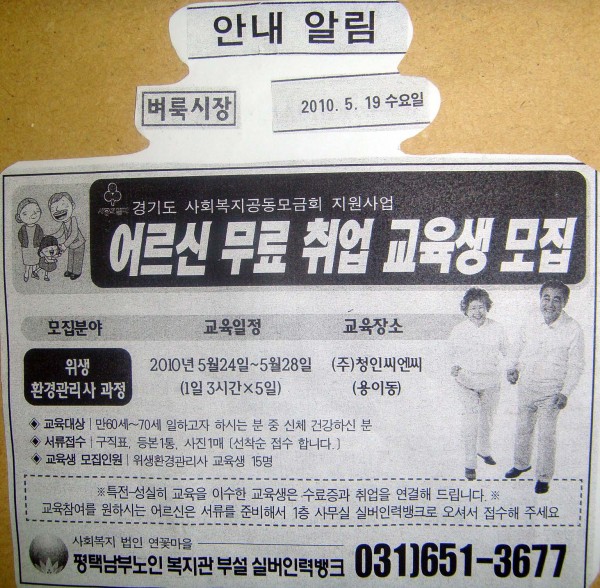 2010년 5월 19일 벼룩시장-"어르신 무료 취업 교육생 모집" 페이지 정보 작성일10-09-09 15:02 조회2,900회 댓글0건 관련링크 이전글 다음글 목록 본문 어르신 무료 취업 교육생 모집 댓글목록 등록된 댓글이 없습니다. 이전글 다음글 목록