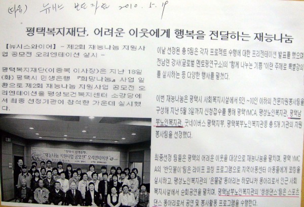 2010년 5월 19일 뉴시스 보도자료(어려운 이웃에게 행복을 전달하는 재능나눔) 페이지 정보 작성일10-09-09 15:15 조회2,961회 댓글0건 관련링크 이전글 다음글 목록 본문 평택복지재단 어려운 이웃에게 행복을 전달하는 재능나눔 댓글목록 등록된 댓글이 없습니다. 이전글 다음글 목록