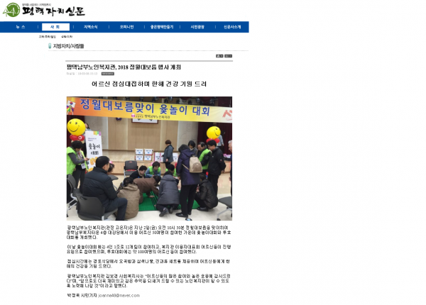 2018년 정월대보름 행사 보도자료 (평택자치신문) 페이지 정보 작성일18-03-07 14:03 조회3,833회 댓글0건 관련링크 이전글 다음글 목록 본문 http://www.ptlnews.kr/bbs/board.php?bo_table=zone&wr_id=102992 댓글목록 등록된 댓글이 없습니다. 이전글 다음글 목록
