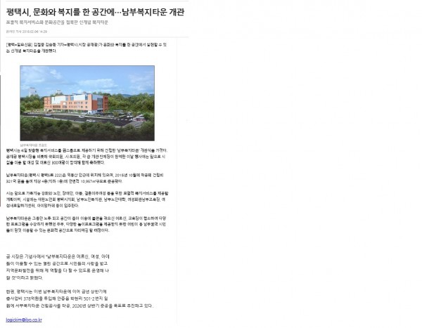 2018.02.06-남부복지타운 개관(일요신문) 페이지 정보 작성일18-04-13 14:17 조회3,906회 댓글0건 관련링크 이전글 다음글 목록 본문 http://ilyo.co.kr/?ac=article_view&entry_id=288753 댓글목록 등록된 댓글이 없습니다. 이전글 다음글 목록